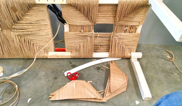 I started the design process by conducting a series of tests of the possible methods of adhesion and joinery between the two materials. These tests ultimately informed a design that expressed many of the of the interesting ways that the two materials could interface. By using 3D CAD modeling, laser cutting and sewing its fabrication became a combination of furniture craftsmanship and fashion design.