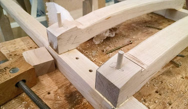 My goal for this bench was to make sure that it was completely absent of any metal hardware. Hence, the structure of the frame is completely reliant on cross lap joinery coupled with strategically (and aesthetically) positioned wooden dowel pegs.